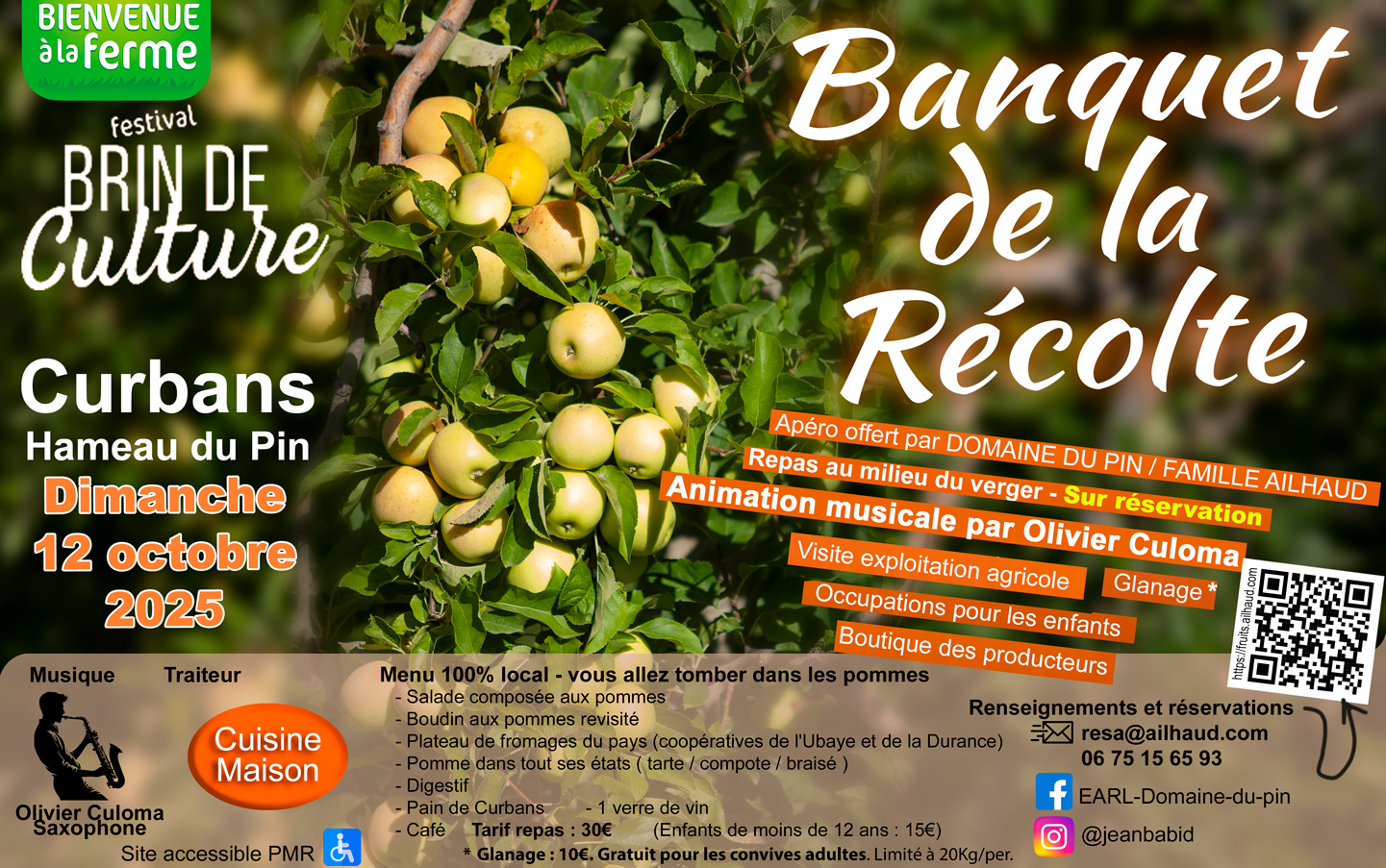 Le Domaine du Pin et Bienvenue àla Ferme vous proposent le Banquet de la Récolte, une fête à la ferme pour marquer la fin de la récolte 2025. La fête s'inscrit dans le festival Brin de Culture.